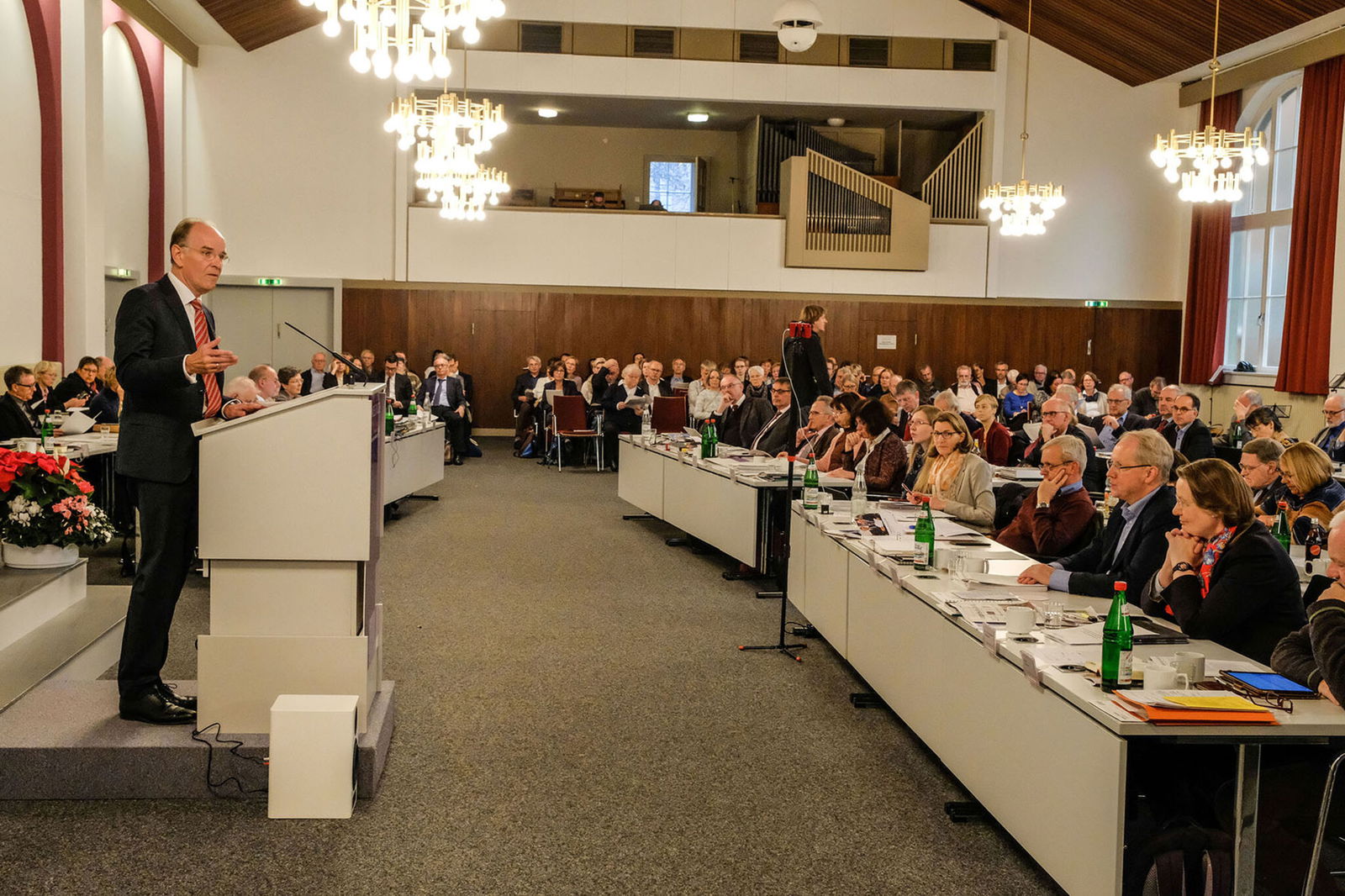 Meister benannte eine Reihe von Klimaschutz-Maßnahmen, die die Landeskirche ergriffen hat: "Angefangen von der ökofairen Beschaffung bis zur E-Mobilität, von der Reduktion des Gebäudebestandes und seiner energetischen Sanierung bis zu den Initiativen bei Freiflächen in unseren Kirchengemeinden, bei Friedhöfen und Pfarrgärten". Es gebe unbegrenzte Möglichkeiten, kleine und große Schritte zu gehen. Dabei habe die Synode eine besondere Chance, "weil sie durch Beschlussfassung Bewegungen verursachen kann, die Einzelnen nicht möglich sind."