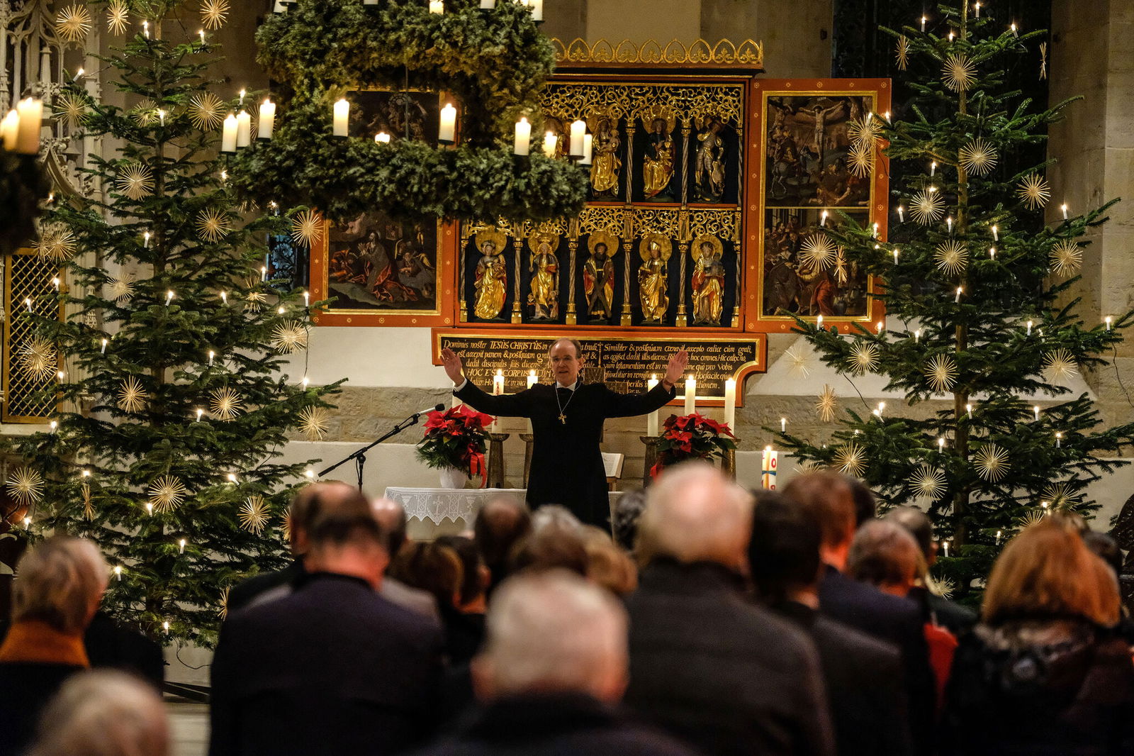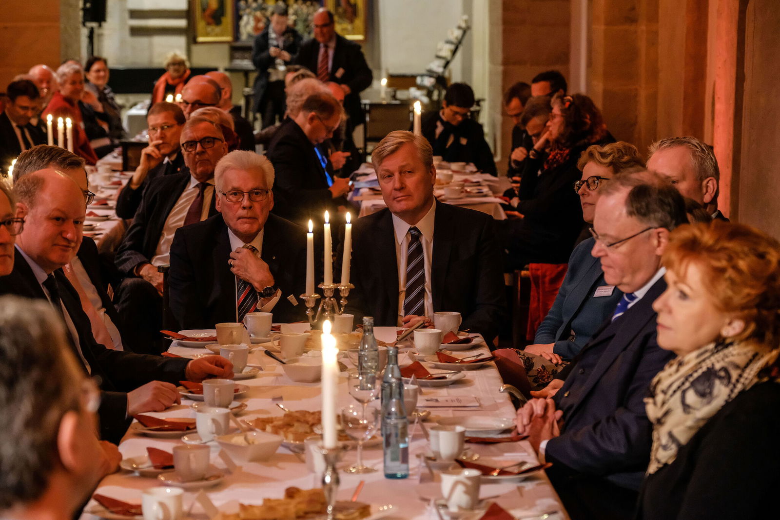Seit 70 Jahren lädt die Landeskirche niedersächsische Repräsentant*innen aus Politik, Wirtschaft und Kultur zum Jahreswechsel zu einem Empfang in das mehr als 850 Jahre alte Zisterzienserkloster Loccum bei Nienburg ein. Wie schon in den beiden vergangenen Jahren war der Ablauf auch diesmal wieder leicht verändert: Das Refektorium, der ehemalige Speisesaal der Mönche mit seinen hohen gotischen Gewölben und wertvollen alten Büchern, ist wegen umfangreicher Umbauarbeiten noch nicht wieder zugänglich. Deshalb nahmen die Gäste in der Klosterkirche Platz, die extra hochgeheizt wurde.