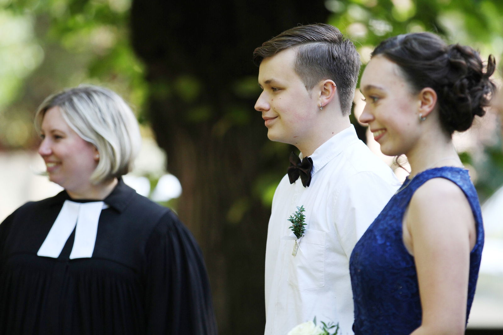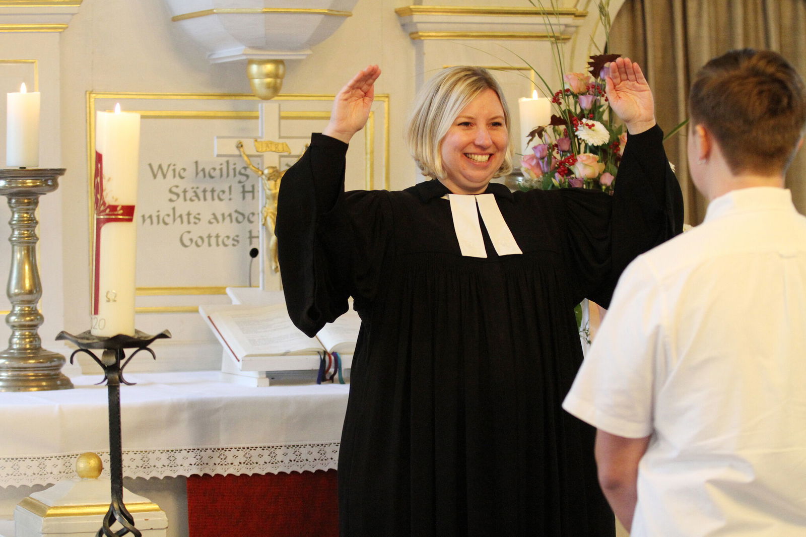 Justin (15), dessen Familie ursprünglich aus Frankfurt/Oder stammt, hatte sich erst vor zwei Jahren taufen lassen. Er hätte es selbst nicht so formulieren können wie die Pastorin, aber ja, er fühle sich verstanden. Auch er war vor dem Gottesdienst „ein bisschen aufgeregt, wegen der vielen Leute“. Jetzt freue er sich, sagt er wenige Minuten nach dem Auszug aus der Kirche. Seine Mutter hatte sich erst nach ihm, Ende 2019, taufen lassen. Zu Pastorin Ritzenhoff ist deshalb eine besondere Beziehung entstanden; die Winklers haben sie zur Konfirmationsfeier eingeladen.