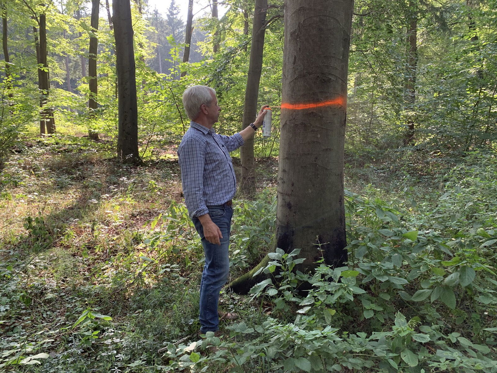 Sierk und sein Team müssen sich jetzt beeilen. Aus zwei Gründen. „Wenn das Laub erst einmal runter ist, sind die toten Buchen nicht mehr so leicht zu entdecken.“ Zudem wird eine tote Buche in Rekordzeit „stockig“. Heißt: Ihr Stamm fängt an zu verrotten. „Buchenschleimfluss“ nennen die Profis, was für den Laien nur wie ein waldboden-schmodderiger Pelz auf der Rinde aussieht. Überdies reißt diese und mit ihr das Holz darunter. „Wenn ich Glück habe und schnell bin, kann ich einen solchen Stamm dann noch als Brennholz nutzen“, lässt Sierk resigniert wissen. Wenn nicht, taugt der tote Baum nicht einmal mehr für Hackschnitzel. Da zieht das Drama um die Ökologie schnell Sorgen um die Ökonomie des Betriebes nach sich.