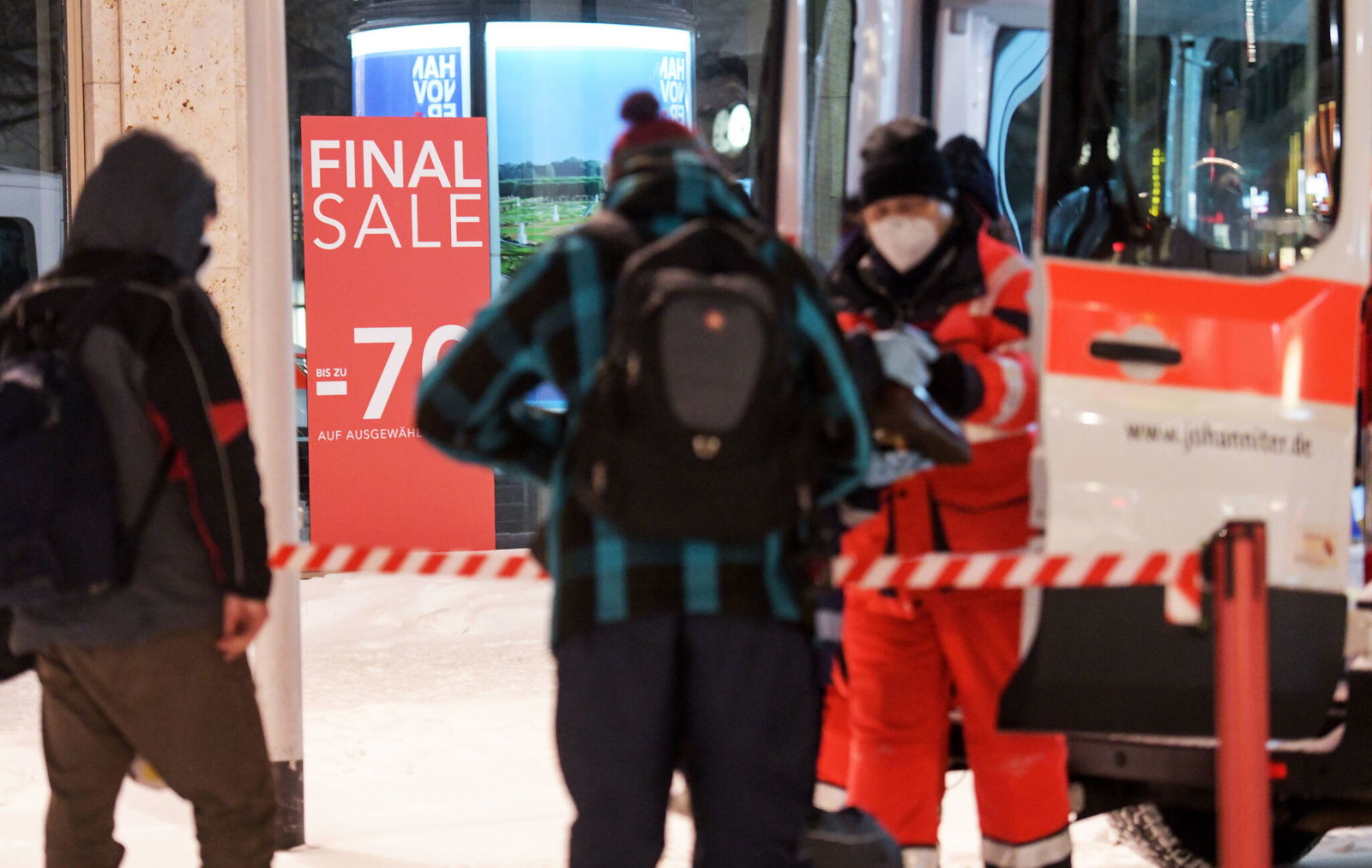 Die klirrende Kälte macht Hannovers Innenstadt in den frühen Abendstunden noch einsamer als ohnehin im Corona-Lockdown. Feinschnee fällt dicht vom Himmel und legt sich über die zum Teil bereits hohen Verwehungen um die Nikolaikapelle nahe dem Steintor. Die Busunternehmen haben den Verkehr eingestellt. Doch vor Hauseingängen, um sich wenigstens etwas vor dem Wind zu schützen, warten einzelne Menschen auf einen Bus, der trotzdem noch fährt. Der "Kältebus" der Johanniter-Unfall-Hilfe versorgt im Winter Obdachlose und Bedürftige mit warmen Essen, Decken, Schlafsäcken und Kleidung.