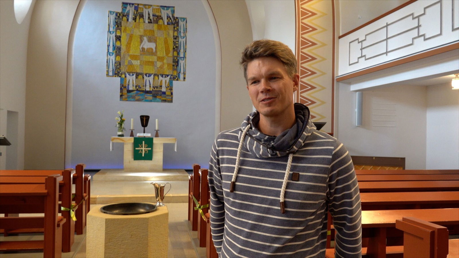 Vor ein paar Monaten kam er zufällig in die Kirche, als im Altarraum zwei junge Frauen standen. „Ich fragte, ob ich Ihnen helfen kann, aber die beiden drucksten erstmal ein bisschen rum, wie 14-Jährige es eben manchmal tun. Bis die eine dann sagte, ihre Freundin sei irgendwie interessiert. Woran sie denn interessiert sei? Am christlichen Glauben. Dann haben wir uns erstmal hingesetzt.“