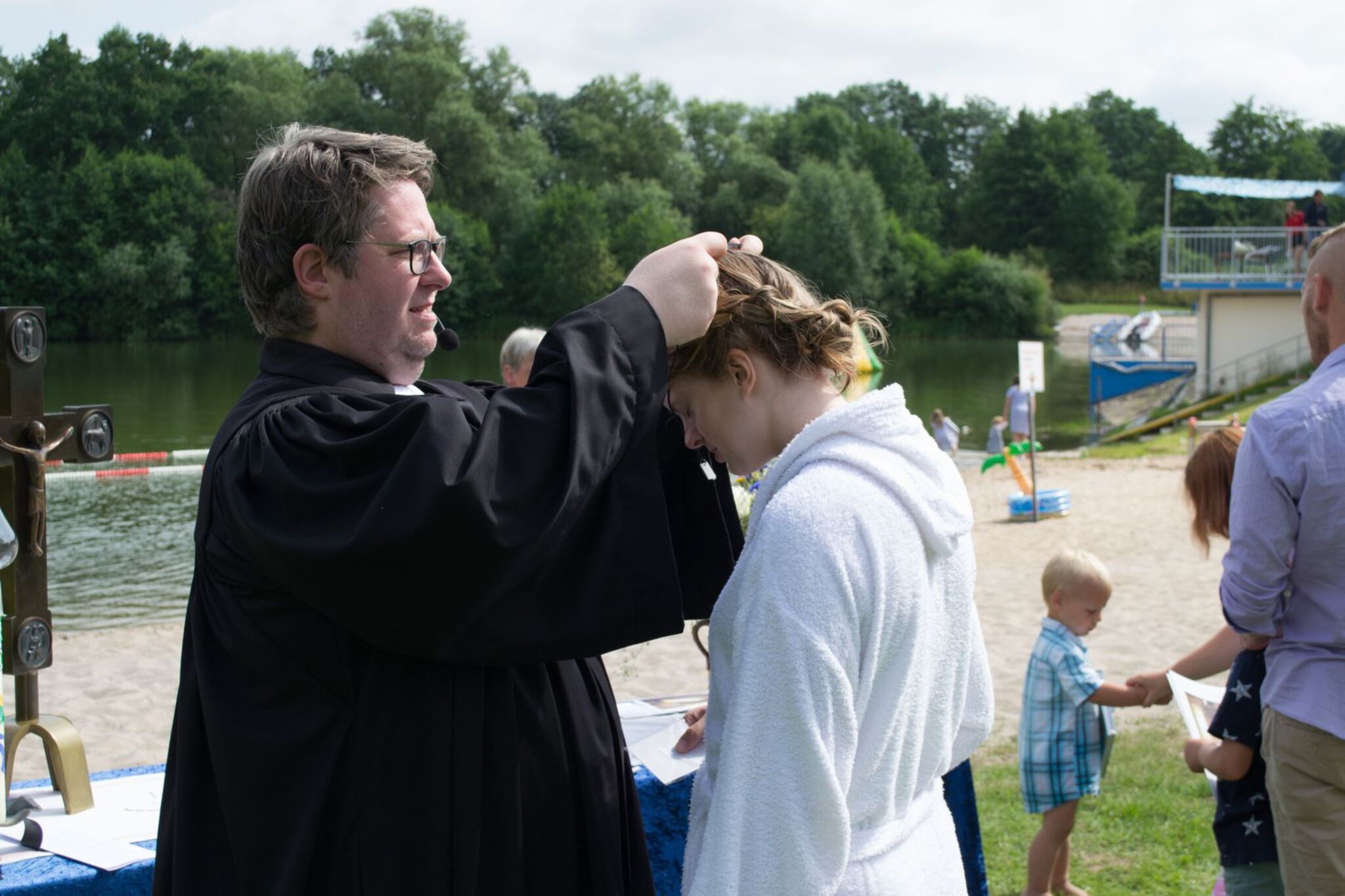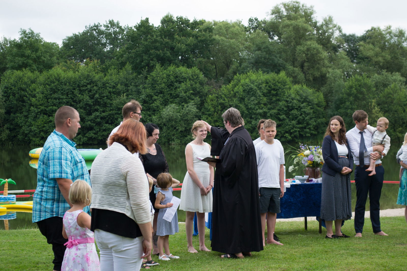 Cramer: „Es war wirklich wunderschön, aber ich war echt nervös. Wir waren insgesamt neun Täuflinge am Badesee in Eystrup. Das Wetter war zwar sommerlich, doch das Wasser war ziemlich kalt. Ich war mit Abstand die Älteste und die Einzige, die eine Ganzkörper-Taufe wollte. Bevor es für mich rückwärts unter Wasser ging, musste ich ein paar Mal tief durchatmen, weil ich aufgeregt war. Aber als ich dann unter Wasser war und wieder hochkam, fiel die ganze Anspannung ab. Es war unglaublich. Meine Freundin Hannah, die mit mir ins Wasser ging, sagte nach der Taufe und dem Segen meinen Taufspruch auf. Sie kam extra aus Baden-Württemberg, das hat mich total gefreut. Ich hätte auch nicht gedacht, dass es so emotional wird, sowohl für mich als auch für meine Freunde und Familie. Sogar eine Freundin, die eigentlich mit Kirche nichts am Hut hat, musste weinen. Im Anschluss habe ich dann mit allen noch ein wenig gefeiert.“