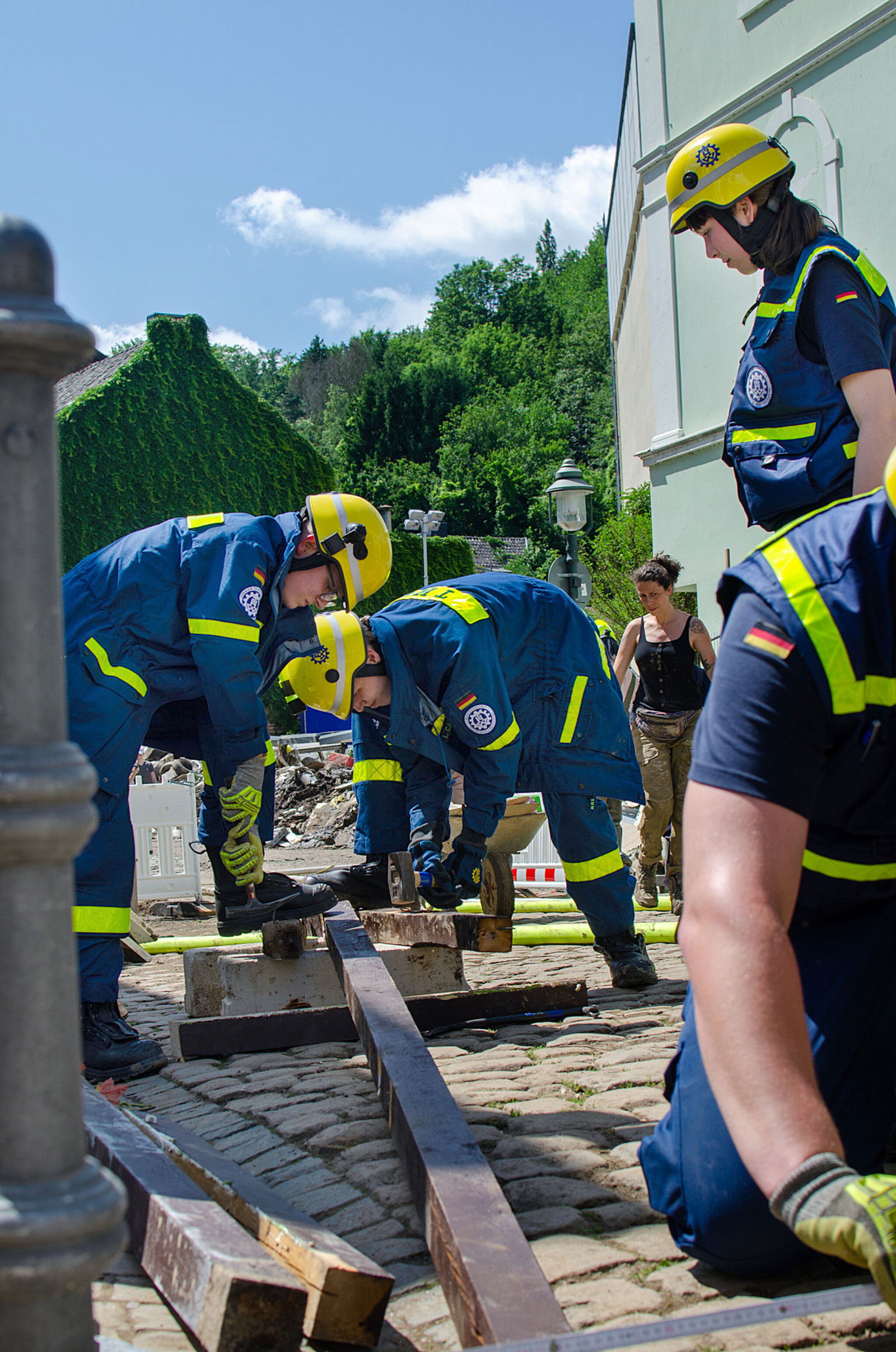 Die Fachleute vom THW halfen dabei, einsturzgefährdete Gebäude abzusichern, damit die Besitzer weiter den Schlamm herausschippen konnten. Zum Teil hätten die Retter mit herumliegenden Balken provisorische Stützen gebaut, denn Baumaterial habe es natürlich nicht gegeben. „Bei aller Liebe zur Technik: Wir können auch mit einfachsten Mitteln etwas tun“, erzählt der ehrenamtliche Helfer, der ansonsten für eine Versicherung im Außendienst arbeitet. „Da hat sich unsere Ausbildung wirklich mal gelohnt.“ Sein Team habe außerdem für eine Beleuchtung in der Stolberger Innenstadt gesorgt und Handy-Ladestationen zur Verfügung gestellt.