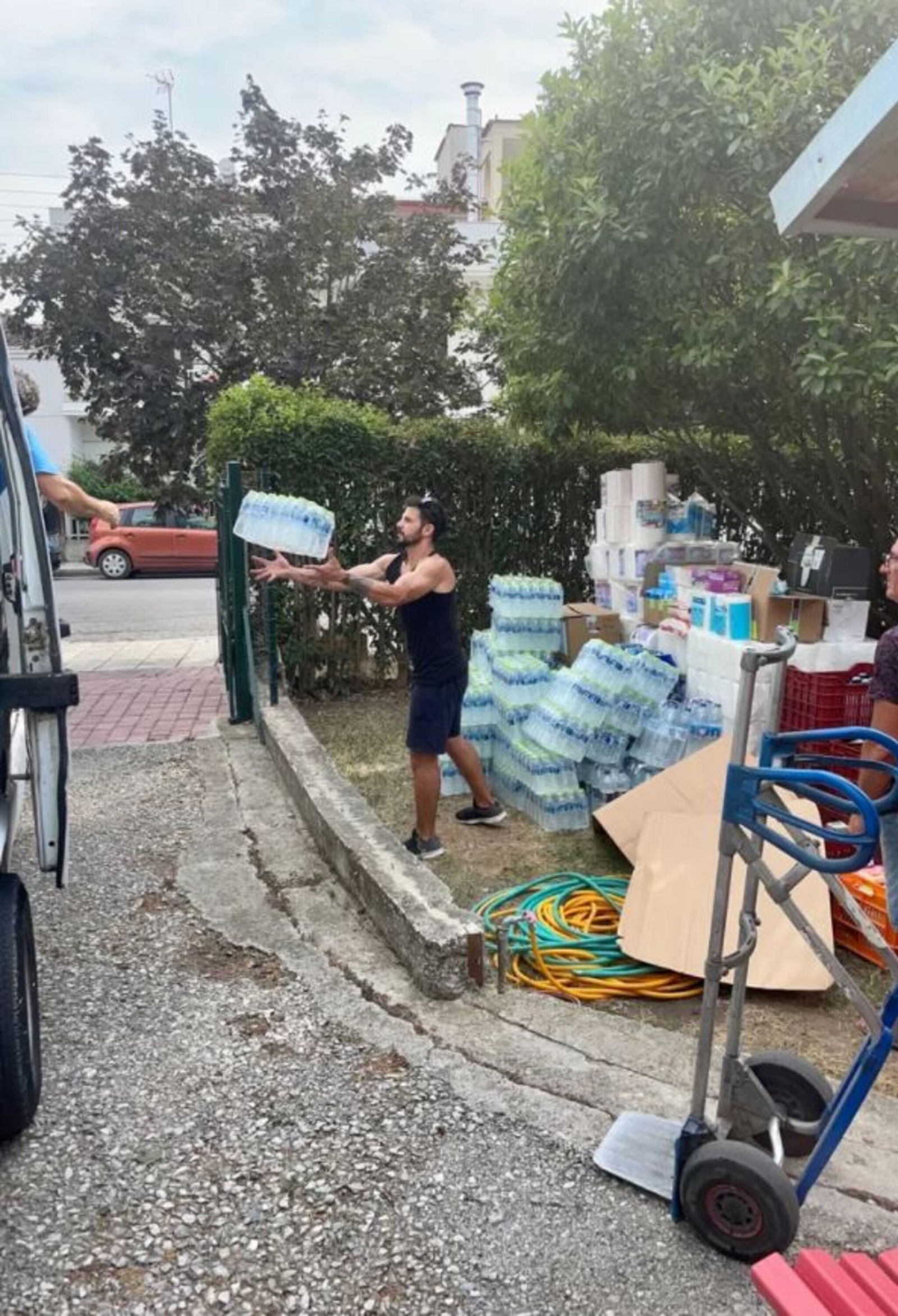Matthias Jung: „Wir tun, was wir können aus knapp 300 Kilometer Entfernung. Das heißt konkret, Spenden sortieren und verpacken, sodass sie per Spedition auf die Halbinsel Euböa nördlich von Athen gebracht werden können. Die Menschen dort wurden in Notunterkünfte gebracht, dort fehlt es aber an allem, wie Windeln, Hygieneartikel und verpacktem Essen. Es sind hier knapp 40 Grad, das ist für uns eine echte Herausforderung, aber wir packen an und haben am Wochenende 7 Paletten in 9 Stunden geschafft.“
