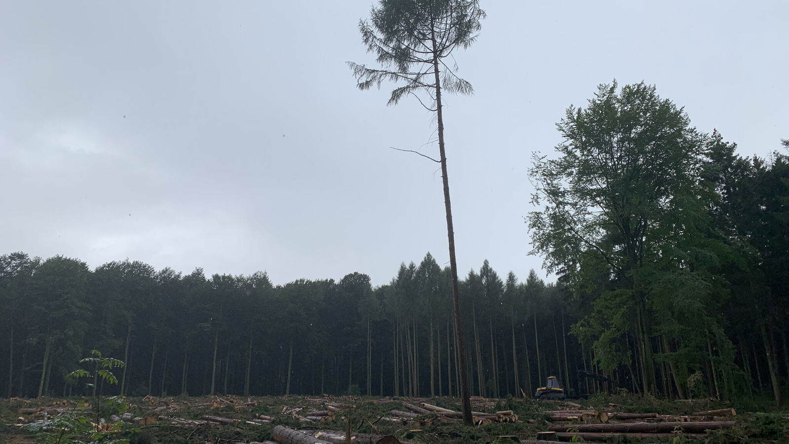 Jeder Baum ist wertvoll: Diese einsame Lärche hatte sich in den (eigentlich) reinen Fichtenbestand verirrt. Sie darf stehen bleiben. Sie schmeckt dem Käfer nicht. Foto: Rebekka Neander