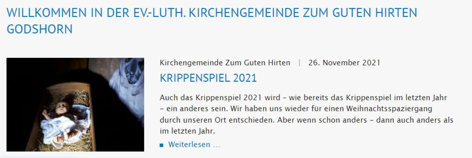 Kinder aus Godshorn haben einen Spaziergang durch den Ort geplant, auf dem die Weihnachtsgeschichte in Schuhkartons erzählt wird. Wer gerne in so einen Karton hineinhören möchte, kann das mithilfe eines QR-Codes mit dem Handy tun. Einen Reiseführer für die 15 Schaufenster, kann man auf der Internetseite der Kirchengemeinde ab dem 23. Dezember herunterladen oder sich ausgedruckt an der Kirche abholen