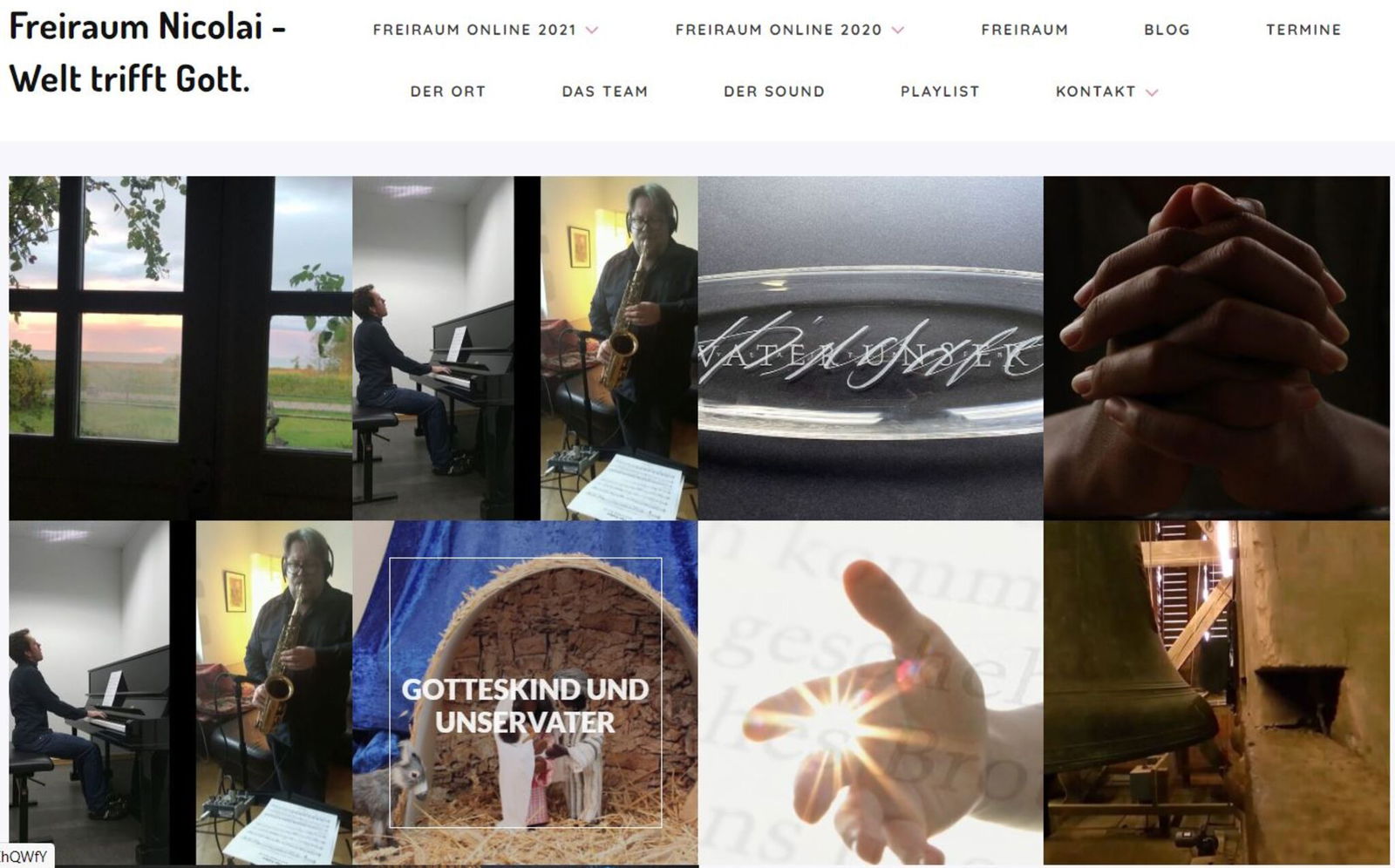 "Freiraum online" ist kein durchgestalteter digitaler Gottesdienst, sondern eine Sammlung von einem guten Dutzend Impulsen zu einem bestimmten Thema. Jeweils zum zweiten oder dritten Sonntag im Monat gibt es ein neues Patchwork online. Die Impulse sind unter kleinen Kacheln versteckt, eine Reihenfolge ist nicht zu beachten.