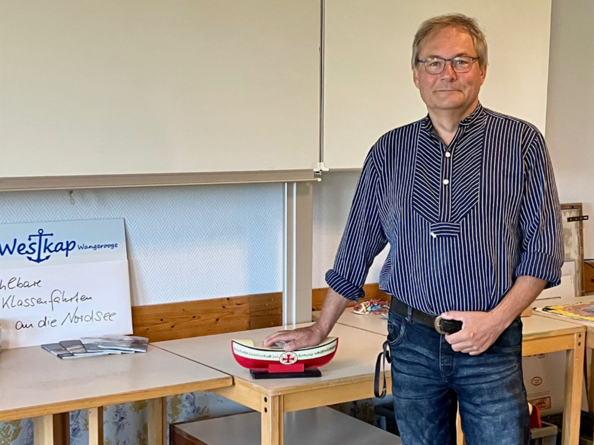Dirk Hönsch lebt dort, wo andere Menschen Urlaub machen – auf der Insel Wangerooge. Und er macht sich für die Deutsche Gesellschaft zur Rettung Schiffbrüchiger (DGzRS) stark. Immer dann, wenn es sein Tun im Jugendgästehaus Westkap zulässt, wirbt der Skipper für die freiwilligen Seenotretter, hält Vorträge, besucht Messen und sensibilisiert Schülerinnen und Schüler während ihres Schullandheimaufenthalts für die so wichtige Arbeit der Ehrenamtlichen. Dirk Hönsch ist schließlich ein lebendiges Beispiel dafür, was die DGzRS für die Gesellschaft leistet.
