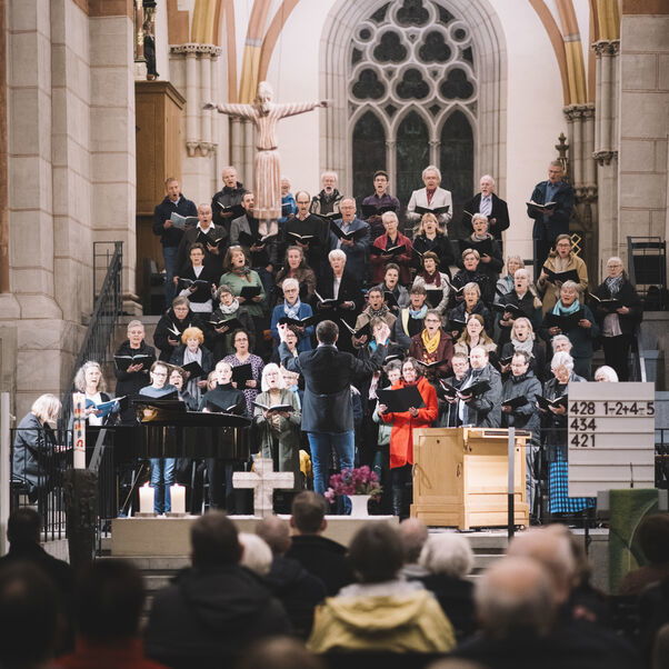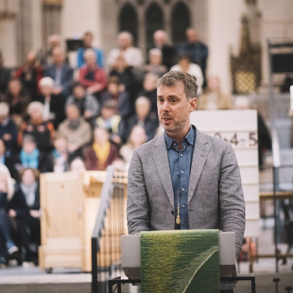 Ein „Lichterweg“ und Glockengeläut geleiteten das Publikum dann in der Konzertpause in die Hamelner Marktkirche St. Nicolai, erläuterte Vaselow. Dort präsentiere die Kantorei Mozarts „Requiem“ im Zusammenspiel mit der Uraufführung einer Tanz-Installation des Choreografen Lars Scheibner. Die Bühne werde dabei von einem Gerüstturm mitten im Orchester beherrscht, der als Sinnbild für den in den letzten Kriegstagen 1945 eingestürzten Turm der Marktkirche stehe.