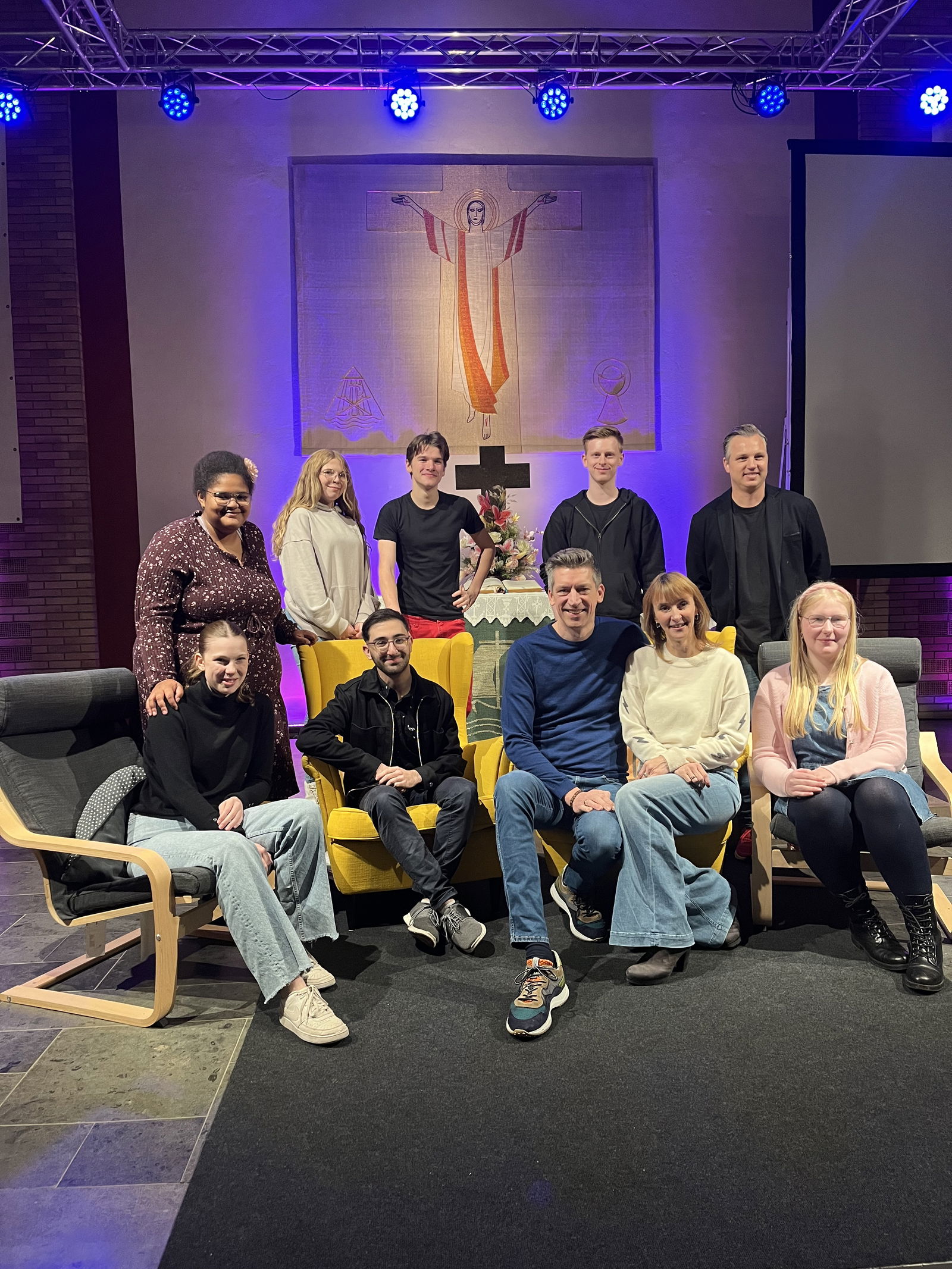 Interviewt wurden beide von Leonie Moritz und Sonja Abendroth vom Team der Jugendkirche, die zuvor verrieten, wie nervös sie doch seien. Auf der Bühne beziehungsweise vorm Altar merkte das Publikum davon nichts. Sie hatten etliche durchaus tiefgehende Fragen vorbereitet, schafften es aber auch, dem Talk die Leichtigkeit zu geben, die auch die Serie ausstrahlen will.
