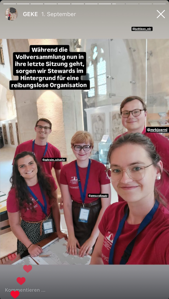 Kempe: Gemeinsame Gottesdienste, Andachten und das Abendmahl feiern waren sehr besonders für mich. Mit so vielen in der Kirche zu sein, mit so fantastischer Musik und unterschiedlichen Sprachen zu singen – es war ein so starkes Miteinander, eine so starke Gemeinschaft und auch Verbundenheit zu spüren.