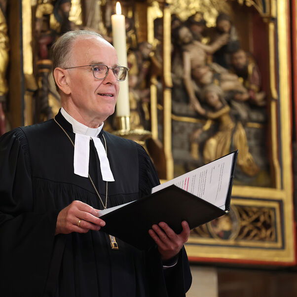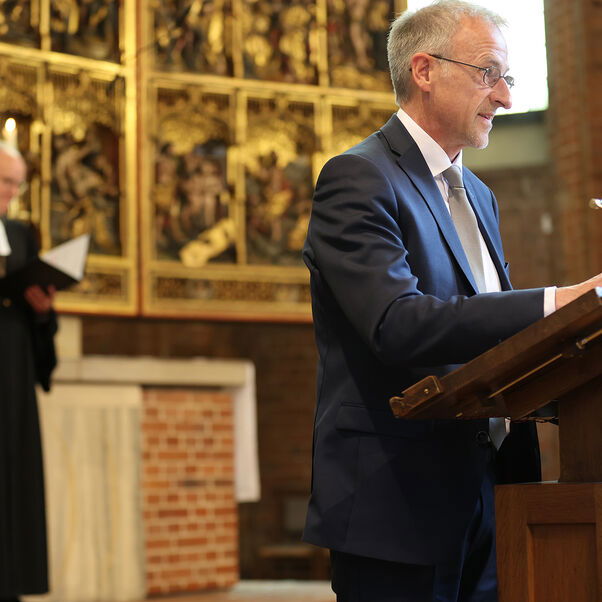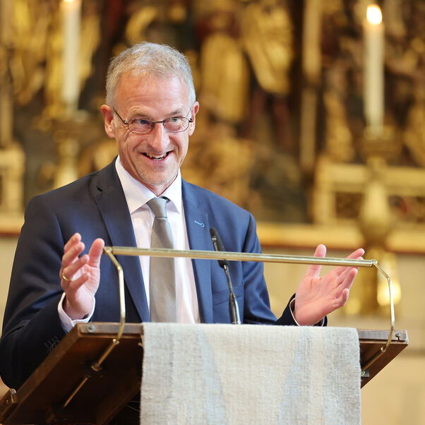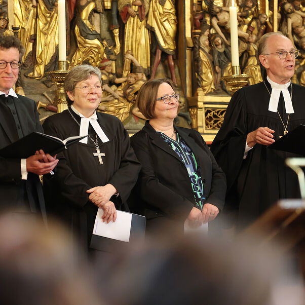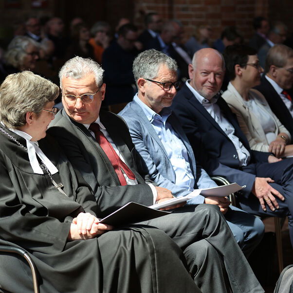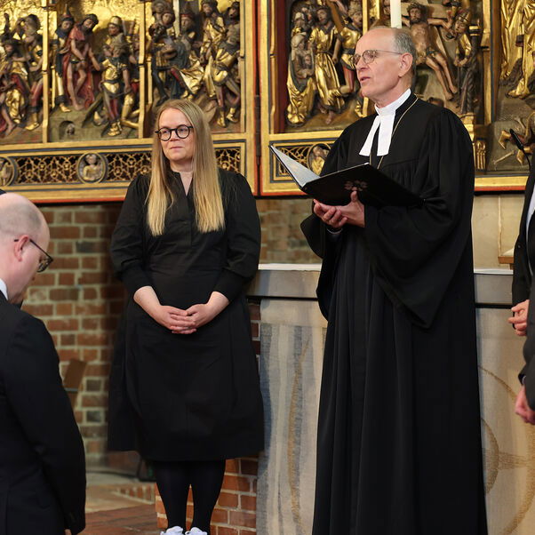Zugleich verabschiedete Meister Goos’ Amtsvorgänger Rainer Mainusch in den Ruhestand. Der 65-Jährige habe es mit seiner „wägenden Wesensart“ verstanden, kirchliches Recht vorausschauend und innovativ weiterzuentwickeln. Dabei sei er stets darauf bedacht gewesen, auf allen Ebenen kirchlichen Handelns gestalterische Freiräume zu eröffnen. Mainusch war seit 2000 Oberlandeskirchenrat und leitet seit 2010 die Rechtsabteilung im Landeskirchenamt. 2021 wurde er zum juristischen Vizepräsidenten berufen.