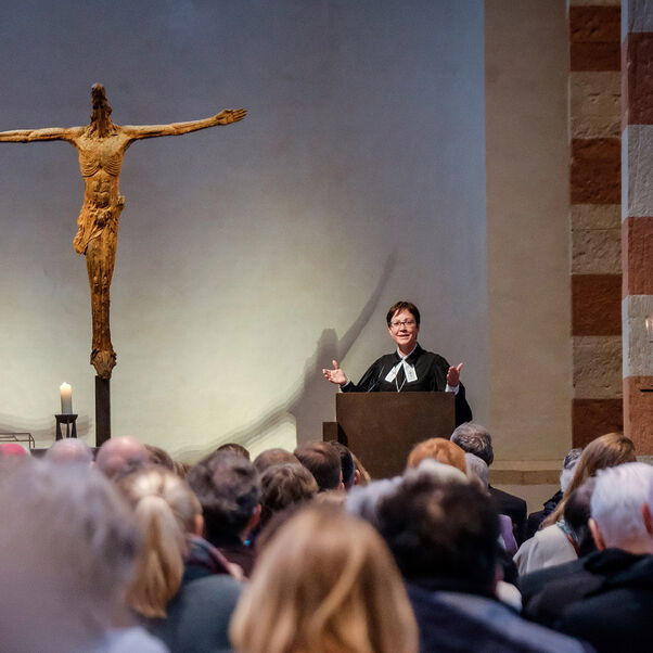 In ihrer Abschiedspredigt warnte Ruck-Schröder vor einer kirchlichen Haltung, die sich mit dem Erreichten begnüge: „Hüten wir uns vor der Zufriedenheit mit dem Status quo“, betonte die scheidende Regionalbischöfin. Christinnen und Christen seien dazu aufgerufen, „den Mangel wahrzunehmen“ und gerade dort aktiv zu werden. Beispielhaft nannte Ruck-Schröder Themen wie den Kampf gegen die Klimakatastrophe, die Weiterentwicklung der Ökumene und ein konsequentes Vorgehen gegen sexualisierte Gewalt.