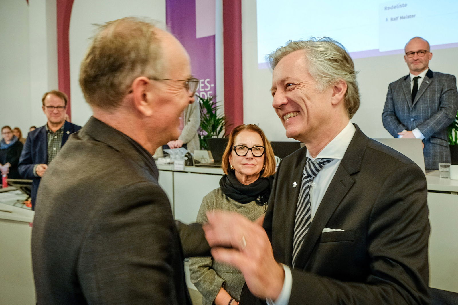 Kannengießer: Ich möchte dem Landesbischof nicht seine Idee mit den drei Hallelujas wegnehmen, aber wenn Sie mich fragen, was besonders positiv war oder wofür ich besonders dankbar bin, versuche ich mal zu überlegen. Erstens freue ich mich, dass es gelungen ist, in der Landessynode die Beteiligung junger Menschen deutlich zu verstärken. Das ist heute ein großer Unterschied zu dem Zeitpunkt vor zwölf Jahren, als ich angefangen habe. Weiter freue ich mich über die aus meiner Sicht an vielen Stellen äußerst vertrauensvolle und im Ergebnis sehr oft gut gelungene Zusammenarbeit zwischen den verschiedenen kirchenleitenden Organen. Die wenigen Einzelfälle, bei denen es nicht so lief, ändern nichts am Gesamteindruck, dass da Hand in Hand gearbeitet wird. Und dann vielleicht noch als Drittes: Ich finde es gut, dass in der Landessynode auch das Geistliche immer seinen Raum hat. Es ist eben nicht ein Parlament, das irgendwie Gesetze möglichst schnell und effizient zu entscheiden hat, sondern da geht es um mehr. Das ist in Eröffnungsgottesdiensten, in Andachten und in Bibelarbeiten immer deutlich geworden.