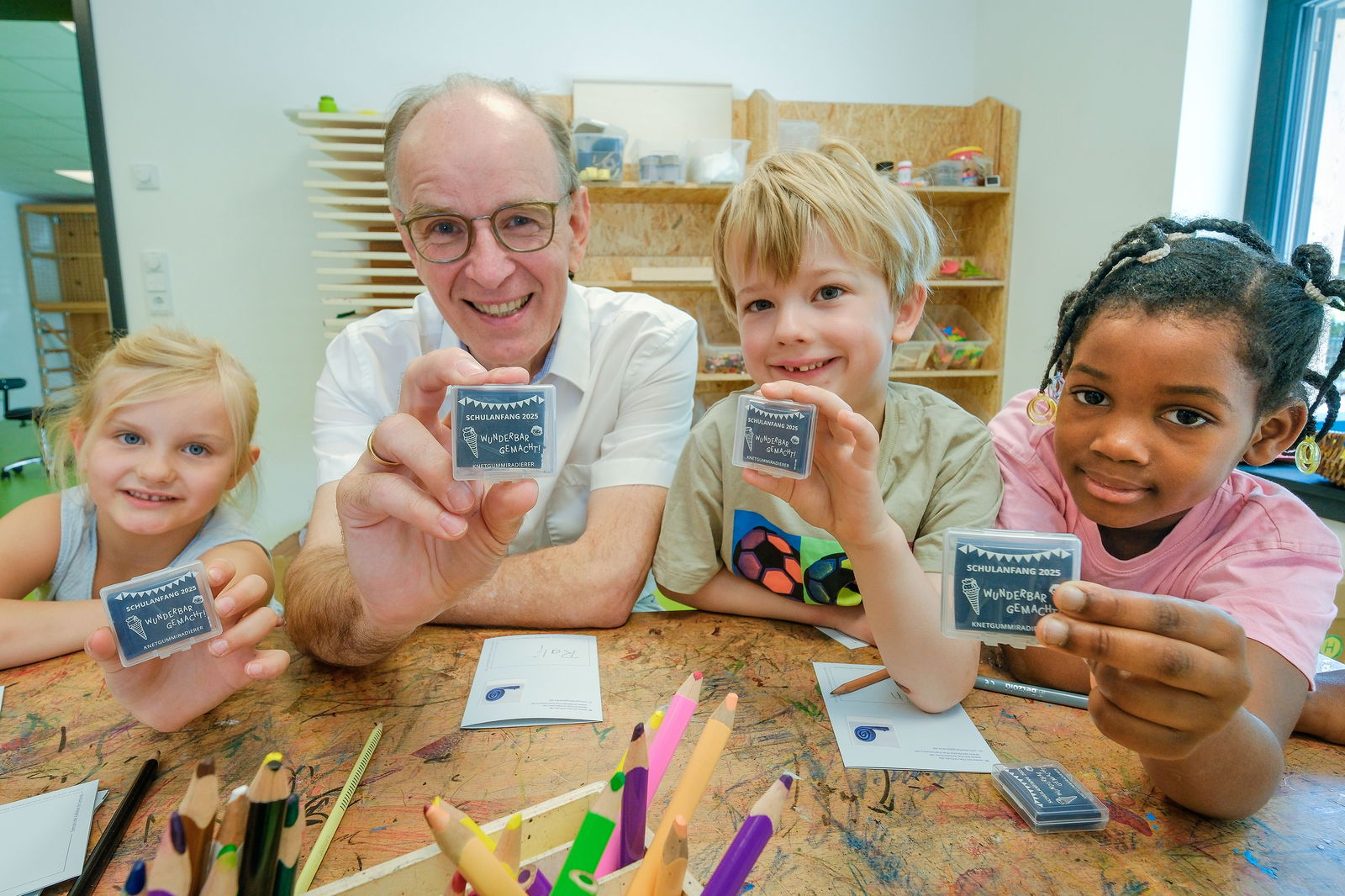 Ein Geschenk von Landesbischof Ralf Meister für die Schulanfängerinnen und Schulanfänger in der Landeskirche Hannovers ist bereits seit vielen Jahren Tradition. Dieses Jahr bekommen erstmals nicht nur rund 46.000 Kinder in der Landeskirche Hannovers ein Einschulungsgeschenk, sondern auch 3.000 Kinder in den Landeskirchen Braunschweig und Schaumburg-Lippe. Sie alle erhalten einen Knetgummiradierer und eine Grußkarte der evangelischen Kirche. Die benachbarten Kirchen haben sich der Aktion unter dem Motto „Wunderbar gemacht!“ angeschlossen.