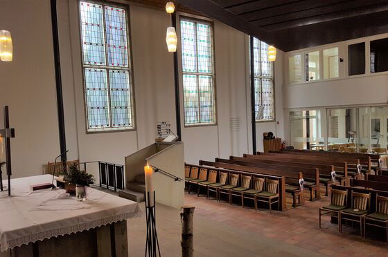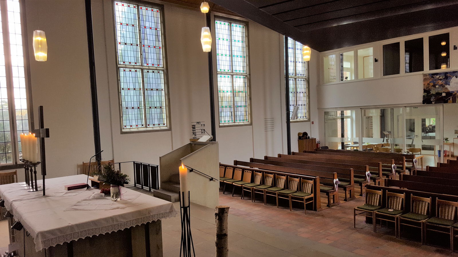 Die Gemeinde in Bokeloh hat die Gemeinderäume in die Kirche integriert. Zu viel Fläche - dieses Problem löste die Gemeinde in Bokeloh durch einen Verkauf von Pfarr- und Gemeindehaus. Die nötigen Gemeinderäumen baute sie in die Kirche selbst ein. Damit ergab sich eine Flächenreduktion von fast 50 Prozent. Am 16. Dezember 2011, genau 50 Jahre nach der Einweihung, konnte der Abschluss des Einbauprojekts gefeiert werden. Nun betreten Gottesdienstbesucher die Kirche durch den Gemeindesaal, der durch sechs große Glastüren vom Kirchenraum getrennt ist. Die unmittelbare Nähe von Gemeindesaal und Kirchraum macht es möglich, beide für Veranstaltungen zusammen zu nutzen. In der angedeuteten Seitenkapelle hinter der Orgel besteht seit Dezember 2011 die Gelegenheit, an einem von Gemeindegliedern selbst geschmiedeten Gebetsleuchter um einen Findling, zur Ruhe zu kommen und eine Kerze anzuzünden. Im Obergeschoss liegt das Gemeindebüro. Kindergottesdienst, Konfirmandenunterricht, Gruppen- und Vorbereitungstreffen finden in den drei Gruppenräumen mit Blick in die Kirche auf das Altarmosaik statt.