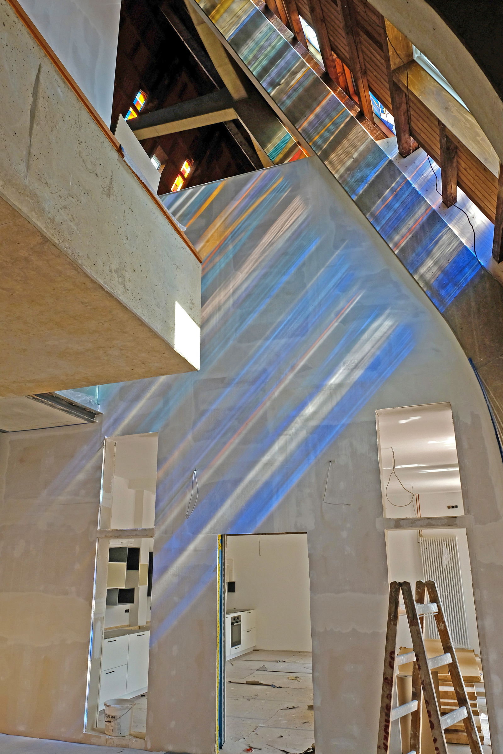 Aus Kirche wird Studi-Wohnheim: Wo einst die Orgel spielte, ist nun eine Gemeinschaftsküche. Und wo Menschen in Kirchenbänken saßen, öffnen sich jetzt Zimmertüren: In der früheren evangelischen Gerhard-Uhlhorn-Kirche in Hannover hat sich ein ungewöhnliches Bauprojekt vollzogen: Zwei Investoren bauten die 1963 errichtete Kirche in ein Studentenwohnheim um. 31 Räume sind hier neu entstanden, mit Eichenparkett, Duschbad und einem äußerst leisen "Flüsterkühlschrank".