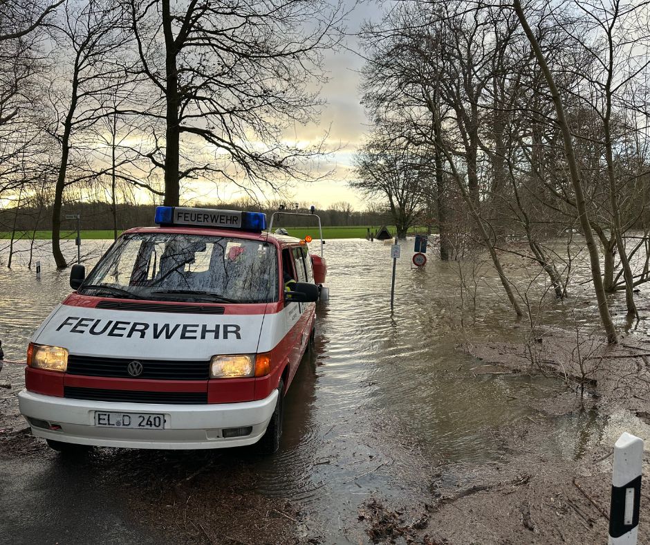 Droste: Hier in Salzbergen haben sich die steigenden Wasserstände der Ems, aber auch der anhaltende Starkregen selbst zunächst durch überflutete Keller bemerkbar gemacht. In den Gottesdiensten an Heiligabend berichteten viele Gottesdienstbesucher davon, dass sie mit Wasser im Keller zu kämpfen hatten. Vielfach musste die Freiwillige Feuerwehr beim Abpumpen unterstützen. Der Melder, der uns Feuerwehrleute zu Einsätzen ruft, löste in der letzten Zeit also deutlich häufiger aus als üblich. Der stetig ansteigende Pegel der Ems führte dann dazu, dass Straßen überflutet wurden und einige Häuser dadurch nicht mehr erreichbar waren. Die Feuerwehrführung und die Gemeindeverwaltung kontrollierten mehrmals täglich die Lage. Aufgabe der Feuerwehr war es dann zunächst Sandsäcke zu füllen und vorzuhalten und auch wichtige Teile der Infrastruktur etwa Transformatoren vor Überflutung zu schützen. Die Notfallseelsorge wurde in meinem Einsatzbereich nicht angefordert.
