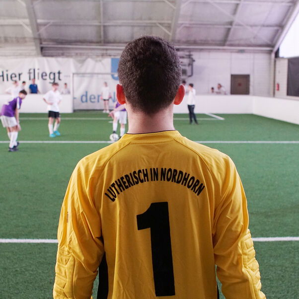Für Nordhorns Kirchentruppe gleicht der Konfi-Cup einer emotionalen Achterbahnfahrt: hohe Siege, aber auch hohe Niederlagen. Der 14-jährige Luca Termeer wirbelt sonst als Stürmer bei Sparta Nordhorn in der Kreisliga, beim Konfi-Cup dagegen steht er im gelben Torwart-Dress mit dem Schriftzug „Lutherisch in Nordhorn“ auf dem Platz. Doch was nützt ein schickes Shirt, wenn das Spiel verloren geht? „Der Frust ist schon groß“, klagt Keeper Luca nach der 0:3-Niederlage im ersten Spiel: „Die Abwehr hat mich ganz schön im Stich gelassen“.