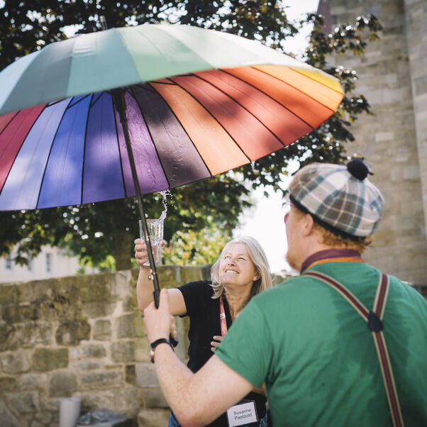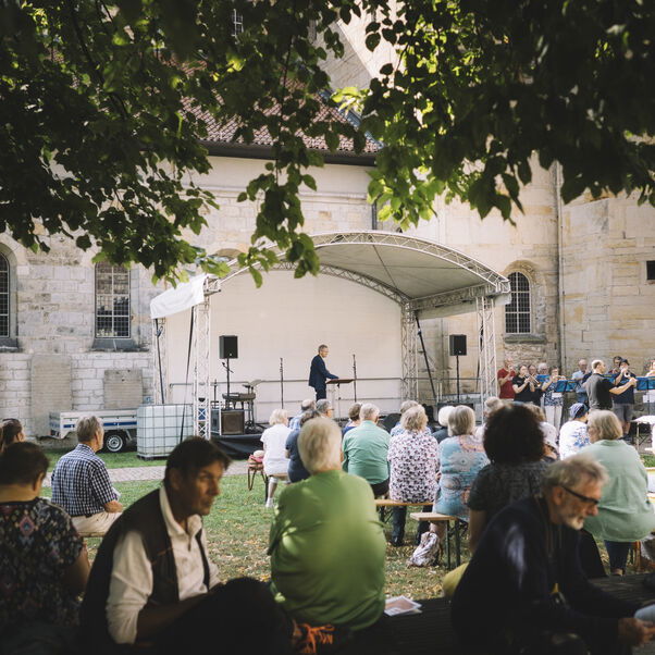 Die Bühne im Innenhof haben Bläserinnen und Bläser aus Hildesheim und Umgebung bespielt, die Singschule Moritzberg eroberte sie mit ihrem Musical „Die Krone der Schöpfung?“. Darüber hinaus standen Gospel-, Pop- und Chorkonzerte auf dem Programm. Bei Mitsingangeboten konnten sich die Gäste selbst musikalisch ausprobieren. In Band-, Posaunenspiel-, kreativen Workshops wurde Kirchenmusik greifbar, in Schreibwerkstätten konnten sich die Teilnehmenden dem Himmel auf dem Papier nähern. Es gab Liebe aus dem Bauchladen, Segen to go mit bunten Fäden und Waffeln am Stiel vorm Weltkulturerbepanorama St. Michaelis. Darüber hinaus stellte sich das Michaeliskloster bei Führungen durch das historische Gesangbucharchiv und durch das Hotel und Tagungshaus vor.