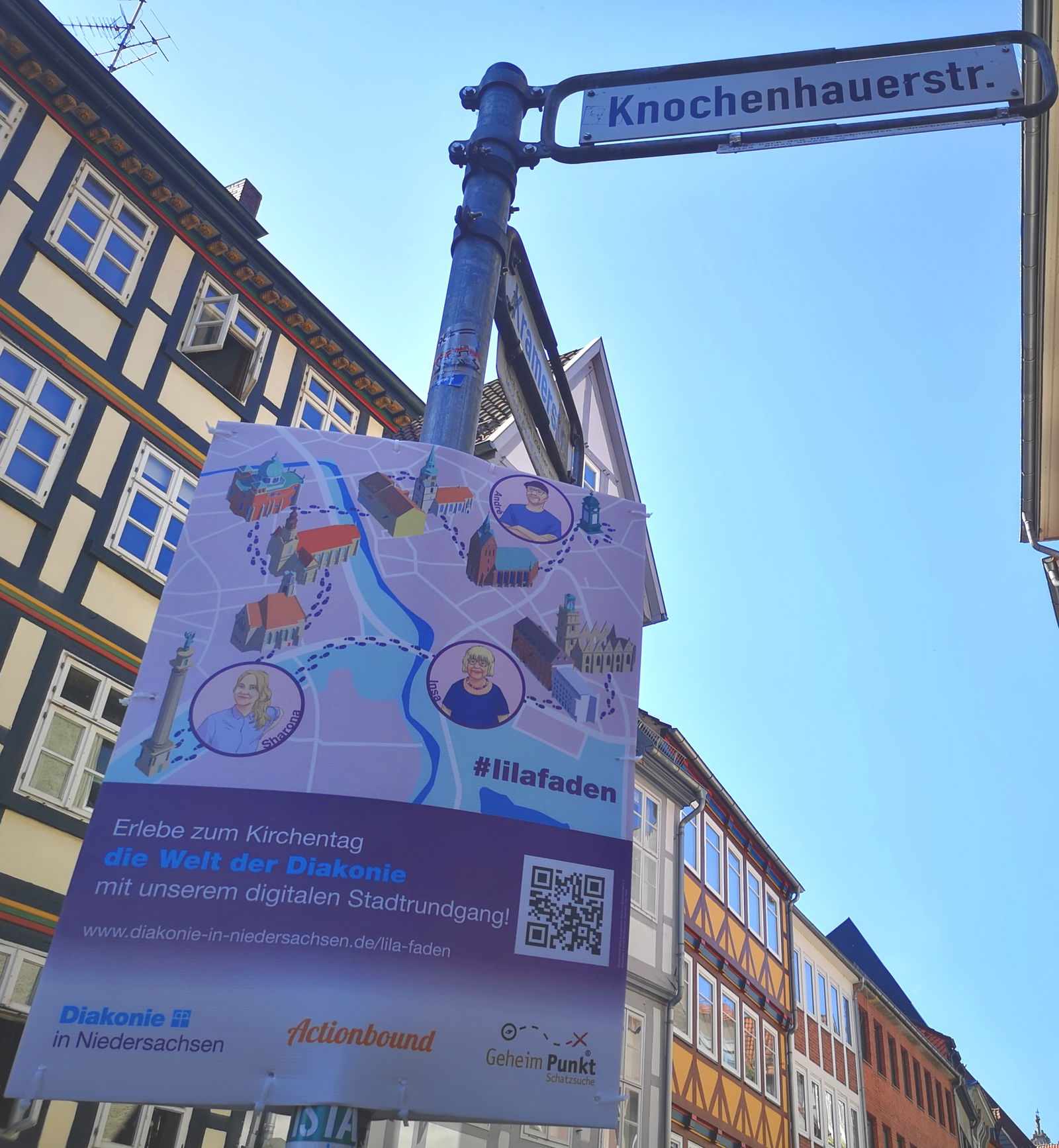 Auf meinem Weg zurück zur Innenstadt probiere ich den Actionbound der Diakonie aus. Ähnlich wie bei einer Rallye bzw. einem „City Escape Spiel“ geht es von Station zu Station durch die Stadt (Startpunkt: Kröpke). Ich als Hannoveranerin kenne mich hier natürlich schon aus und bin wohl auch nicht ganz das Zielpublikum der Aktion. Aber mir gefällt der interaktive Aufbau: Die Erzählfiguren stellen einem Rätsel und geben Informationen über diakonische Angebote in Hannover. Schade, dass mein Patenkind nicht dabei ist, der hätte bei dieser Aktion definitiv viel Spaß!