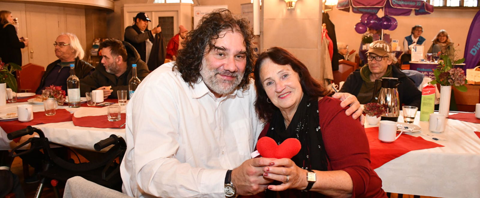 Einen ganz besonderen Schlüssel fanden Uschi Wille aus Hameln und Matthias Heinze aus Rinteln bereits bei der Vesperkirche 2024 – den Schlüssel zu ihrer Liebe. Am Freitag feierte das Liebespaar sein Einjähriges unter tosendem Beifall in der Vesperkirche. Heike Köhler hatte das süße Geheimnis öffentlich gemacht und gratuliert. „Ihre Herzlichkeit und Fröhlichkeit waren für mich sofort ansteckend“, berichtet Matthias über seine Uschi. Der gelernte Einzelhandelskaufmann war vergangenes Jahr nur durch Zufall in die Marktkirche geraten. Er hatte bei seinem Freund Henning Wehrmann Fotos von der Vesperkirche 2024 im Status gesehen – und war dann aus Neugierde hingegangen. „Seine tollen braunen Augen und seine sympathische Art haben mich gleich fasziniert“, sagt Uschi, die seit vielen Jahren ehrenamtlich beim DRK Hameln arbeitet. Beide teilen ein gemeinsames Hobby: Sie reisen gerne in andere Städte und nutzen dazu das Deutschlandticket.