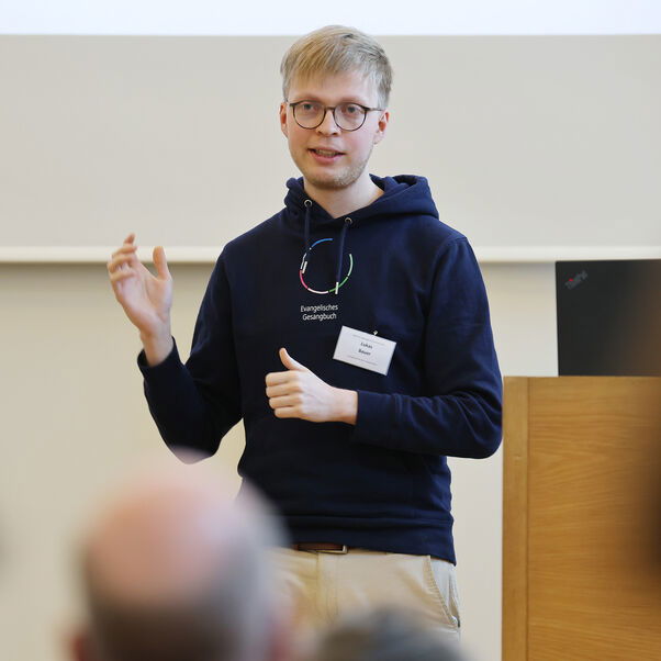 Lukas Bauer: Ich nehme aus dem Austausch vor allem die große Leidenschaft für das Gesangbuch mit – und die Energie, die im Raum spürbar war. Viele Menschen hatten ein starkes Bedürfnis, ihre Meinung zu teilen, miteinander ins Gespräch zu kommen und auch andere Perspektiven wahrzunehmen. Diese Vielfalt an Sichtweisen auf das neue Gesangbuch fasziniert mich immer wieder. Dabei hat jede dieser Perspektiven ihre Berechtigung, weil sie jeweils die Realität in den einzelnen Gemeinden widerspiegelt. Besonders schön war für mich auch zu erleben, dass die Erprobungsphase vor Ort tatsächlich funktioniert hat. Menschen haben erzählt, was sie in ihren Gemeinden ausprobiert haben und welche Reaktionen das ausgelöst hat. Außerdem konnten wir hier manche Kritik aufnehmen und Hintergründe erläutern. So entstand bei einigen ein neues Verständnis für die inhaltlichen Entscheidungen des Erprobungsbands.